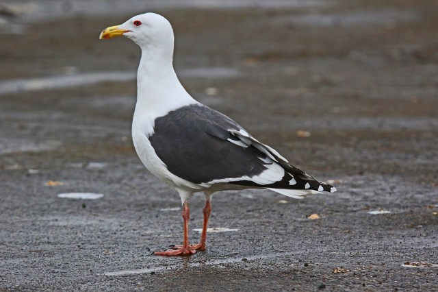 This is the third or 4th year for this striking dark mantled gull. This photo was from maybe 25 feet in my car on the slab next to the bridge. Sure beats distant rooftop shots. Later there was a “probable” Slaty Backed Gull in Snohomish County – distant rooftop views only.