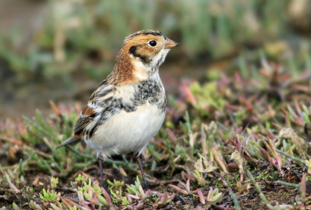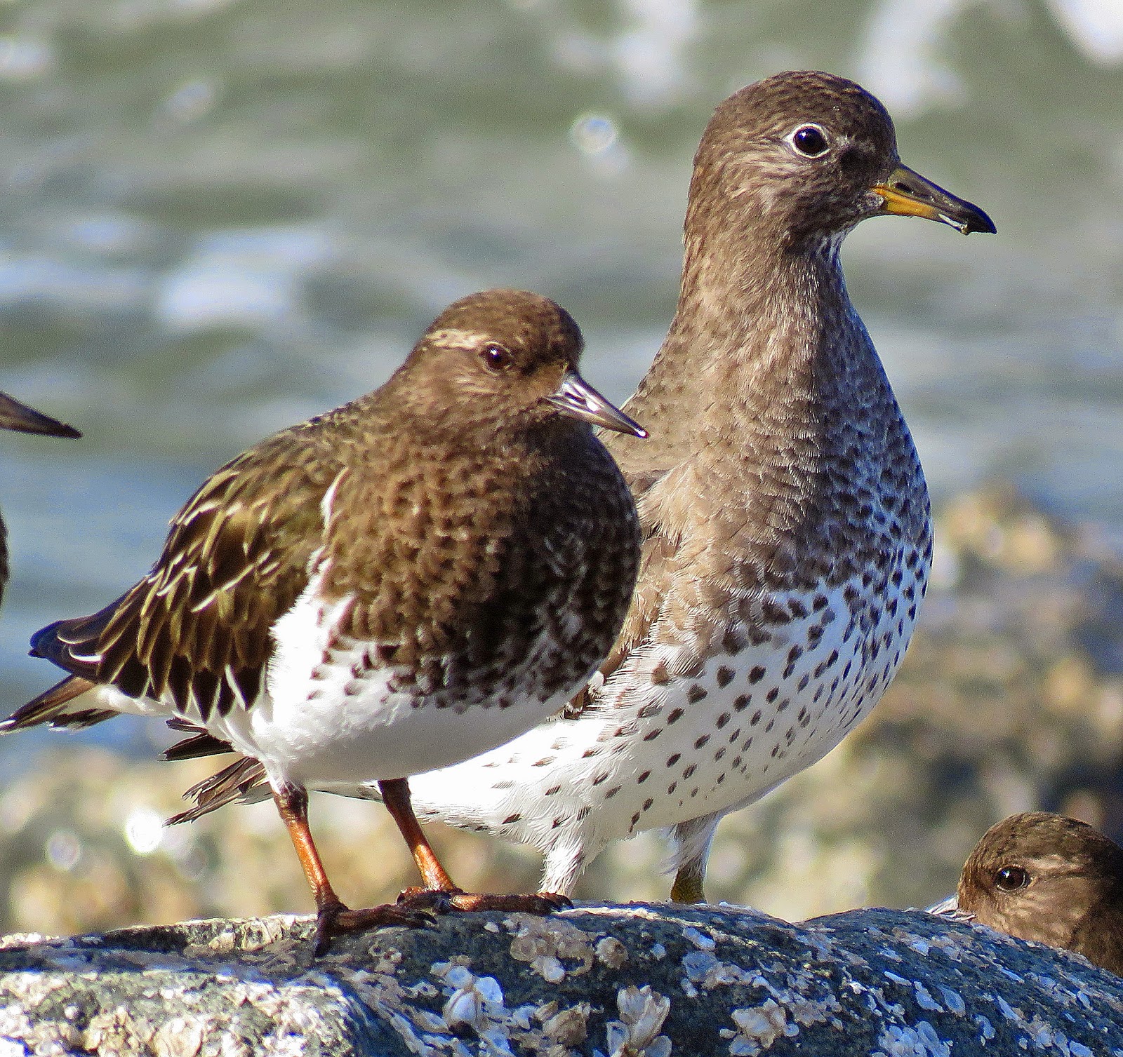 Pretty hard to beat a Ruddy Turnstone for beauty with the Ruddy wings and red legs. Earlier in the year at Ediz Hook a winter plumaged Ruddy Turnstone worked the rocks along with Snow Buntings as we searched for the Thick Billed Murre (below). The pattern is similar but a prime example of how showy breeding plumage can be.