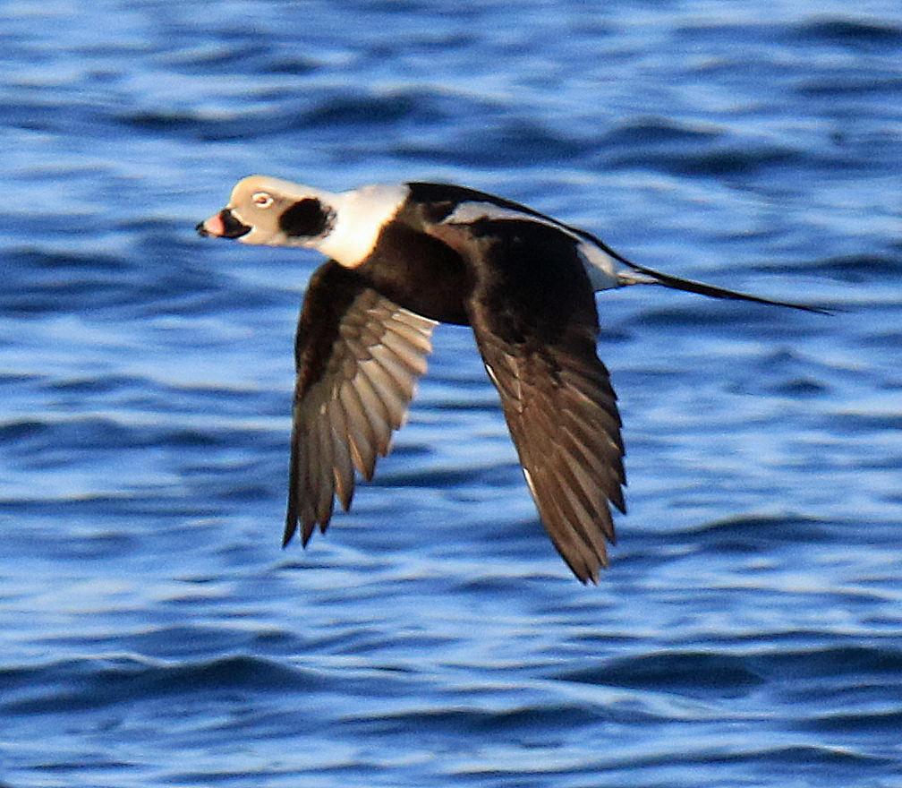 Following up on a great Christmas Bird count report from the area, I organized a boat trip out of John Wayne Marina specifically with hopes of finally getting a photo of a Yellow Billed Loon. We had great weather and all 20 onboard got great looks at this loon and one other. Another highlight was hundreds of Ancient Murrelets and abundant Long Tailed Ducks. The great sun afforded a super photo of a winter plumaged Pigeon Guillemot in flight as well.