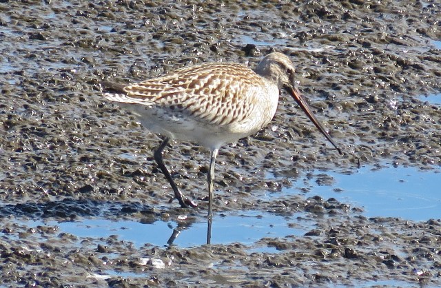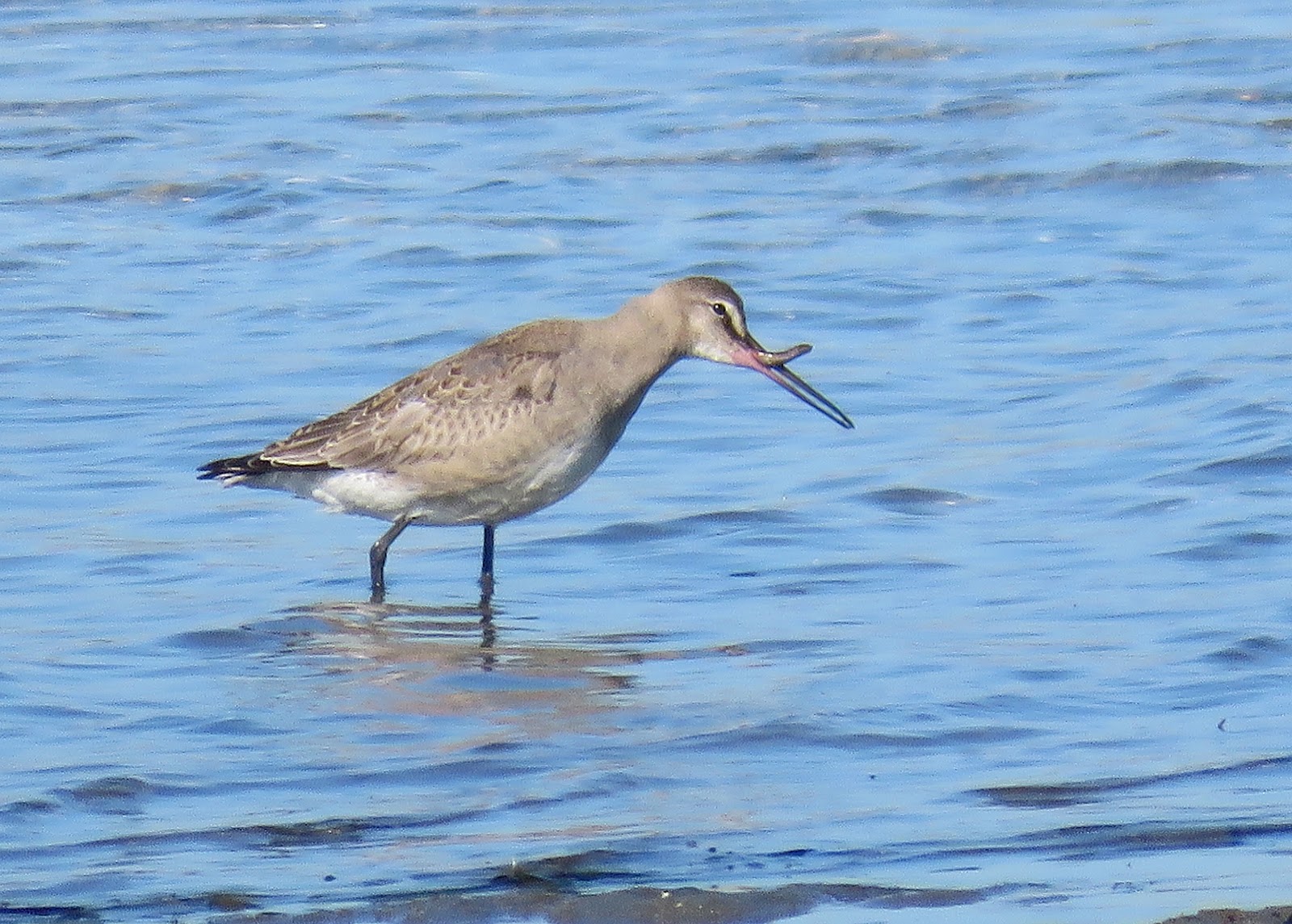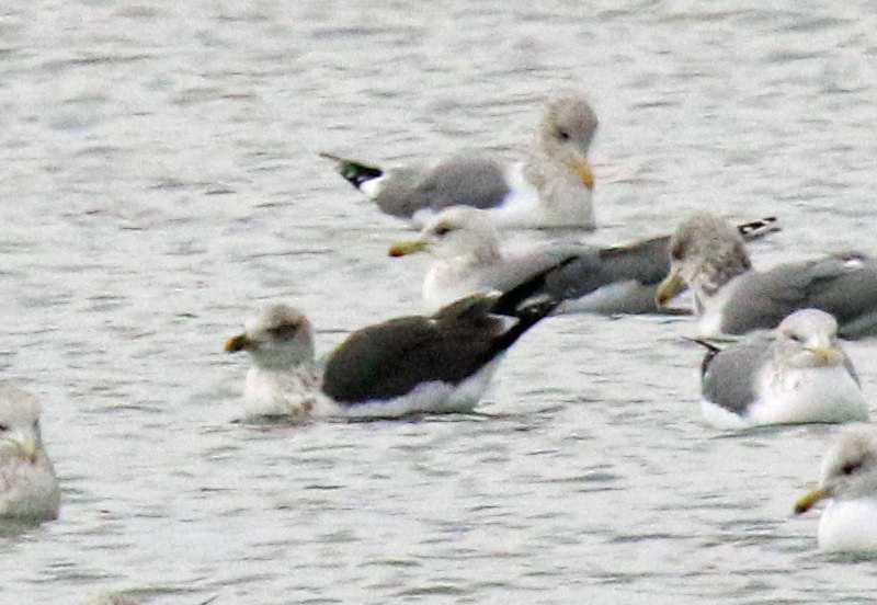 This rarity has returned to Ediz Hook for at least two and maybe three years. Bob Boekelheide and I studied it at length through the scope and kept hoping it would come closer. It did not. This is a highly magnified distant photo but suffices at least for ID.