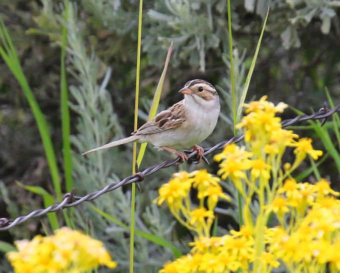Stroup Road is in the Medical Lake area and is one of many grid roads in the basically farming/grassland country. When I got to the “regular” spot at the 90 degree bend to the west at the bottom of Stroup, I saw two cars parked. I assumed they were birders in this way out of the way spot. But instead it was some young folks doing I don’t know what. My concerns that this would ruin the birding proved unfounded when they left shortly after I arrived and I found the photogenic Clay Colored Sparrow quickly. It is not colorful (clay is pretty dull), but the markings are so striking – a really beautiful bird – so it gets two photos.