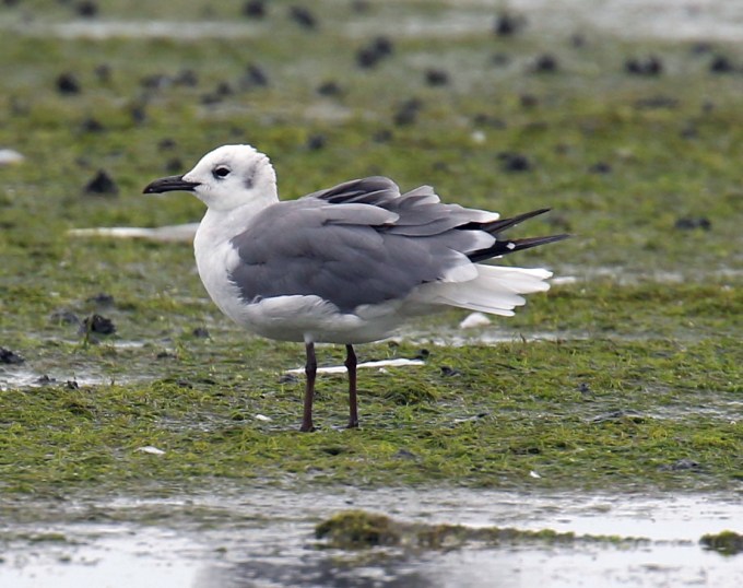 We casually paid attention to the shorebirds along the surf but my focus was on her Snowy Plover wisdom. Suddenly all hell broke loose and all of the birds nearby took off. This is usually initiated by a Peregrine Falcon flying by. This time there was no falcon but a Parasitic Jaeger, another bird that preys on small shorebirds, flew past – the danger that set the birds to flight. Although it was admittedly a fleeting view, we clearly noted that one of the birds in the groups was “different”. Not all field marks were processsed but this one bird was notably larger than the Western Sandpipers and had what appeared to be a gray back and MOST importantly a WHITE RUMP. At the time I had no idea what it was or could be or what else to look for but that white rump was unmistakable and the size was noticeably if not significantly larger than the Western Sandpipers that flew off with it – but without the white rumps.