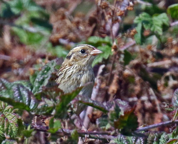 No birding on Thursday, but Friday may have been even better than finding the Painted Redstart as I was able to find and photograph the LeConte’s Sparrow that had been discovered by Jason Vassallo at Discovery Park.  This was a Life Bird and was one I was hoping to see on some upcoming trips to the Midwest and to Louisiana later this year.  I never expected to have a chance in Washington.  Typically it is very much a skulker, and I got lucky – photographing it during the very few seconds it was in the open.  It was ABA Life Photo #690 – I was thrilled.