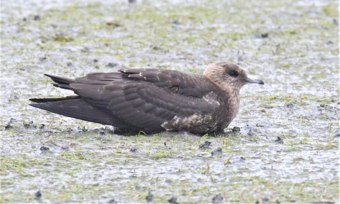 At one point all of the shorebirds took off in a flash and Michael, Knut and I all simultaneously yelled “Peregrine” anticipating that there would be one scaring them off. A few seconds later one did indeed swoop by. It put on a great show hanging around for several minutes – chasing but not catching any of the shorebirds and then landing in shallow water providing a great photo opportunity.