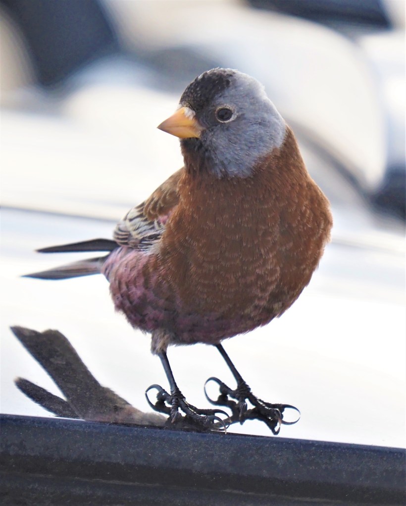 Gray Crowned Rosy Finch (Hepburn’s) – Atop the Dennys’ Car
