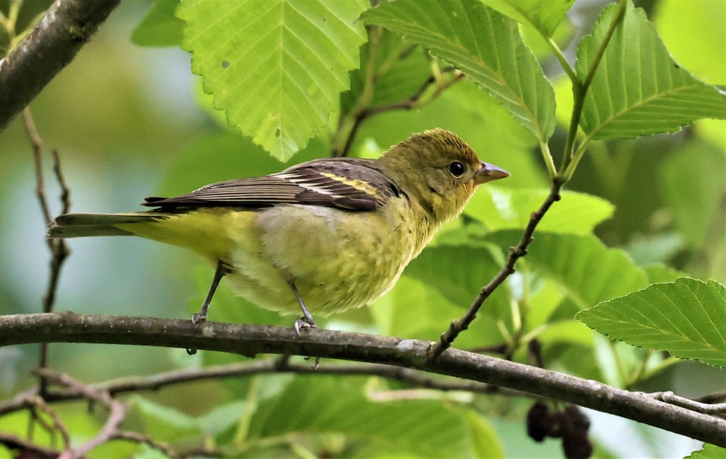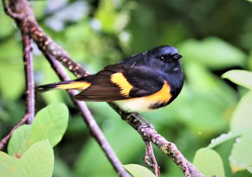May 24th – Snohomish County Regular “Rarities” – My new camera/lens set up is much heavier than the Olympus that I had been using but I loved the ease of focus and the image density with a 48 megapixel full frame sensor. It has gotten a couple more tests and is definitely a keeper. We finished the move over the following weekend and by Monday I both wanted and needed to get out even though there was rain and cloudy skies in the forecast. The main draw was the aforementioned American Redstarts that have been returning to a favored spot on the Oso Loop Road just off Highway 530 west of Arlington. Redstarts are common Eastern warblers but are found in only a few places in Washington. This would be my 5th year in a row seeing them at this spot. I heard one singing as soon as I arrived and after a short wait got a great visual and some photos. I thought I might have heard a second male, but was never sure. I did get a quick look at a female as well. I also heard my FOY Western Wood Pewee and both Yellow and Wilson’s Warblers.