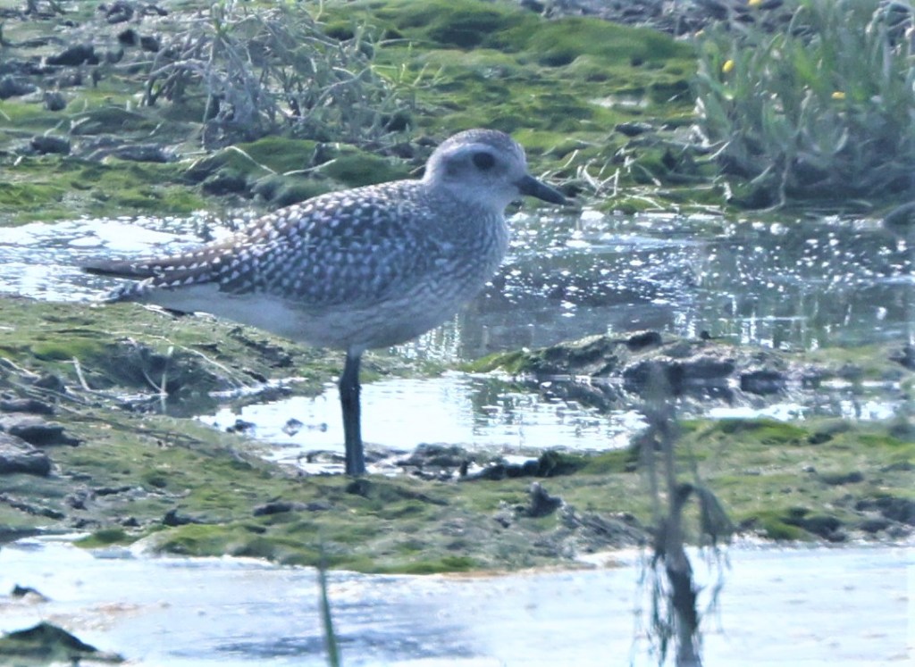 Although the tide was completely wrong, there were birds at Hayton – hundreds or even thousands of them, but they were mostly scope views only – into the sun and with heat shimmers making viewing difficult. There were at least a thousand shorebirds but almost entirely unidentifiable even at 30X magnification. But I got lucky and the Pacific Golden Plover that has been there for several days just happened to catch some sun as my scope picked out the few “larger” birds in the distant mud, joined by a few Black Bellied Plovers. Odds are decent that there may have been something “good” among the other shorebirds but I just could not make out anything in detail. The same was true for waterfowl. Definitely some Mallards and Canada Geese, but what were those other hundreds of ducks? Green Winged Teal, yes but I was not quite plugged in to a goal of 50+ species for the day, so I just noted “duck sp.” on Ebird.