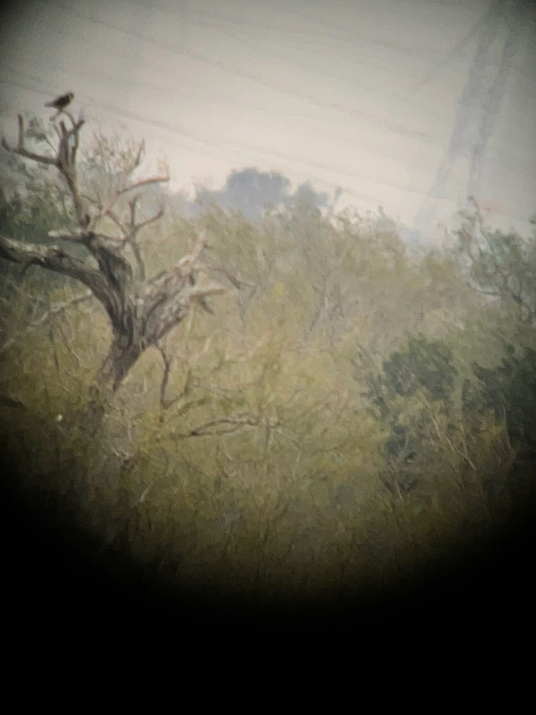 Far out and visible only barely through binoculars Lisa saw a “bump” on a snag. Steve took a picture and it looked like it “might” be the Bat Falcon. There was one scope in the group and with Lisa’s help, it was trained on the bump and sure enough it was the Bat Falcon. Everyone got a look and had a “tick” for a lifer. We all took turns trying to get Digi scoped photos – with varying degrees of success – but proof of our good fortune. Granted it was a lousy photo but this was my third ABA lifer for the day – almost making up for the cold – almost.