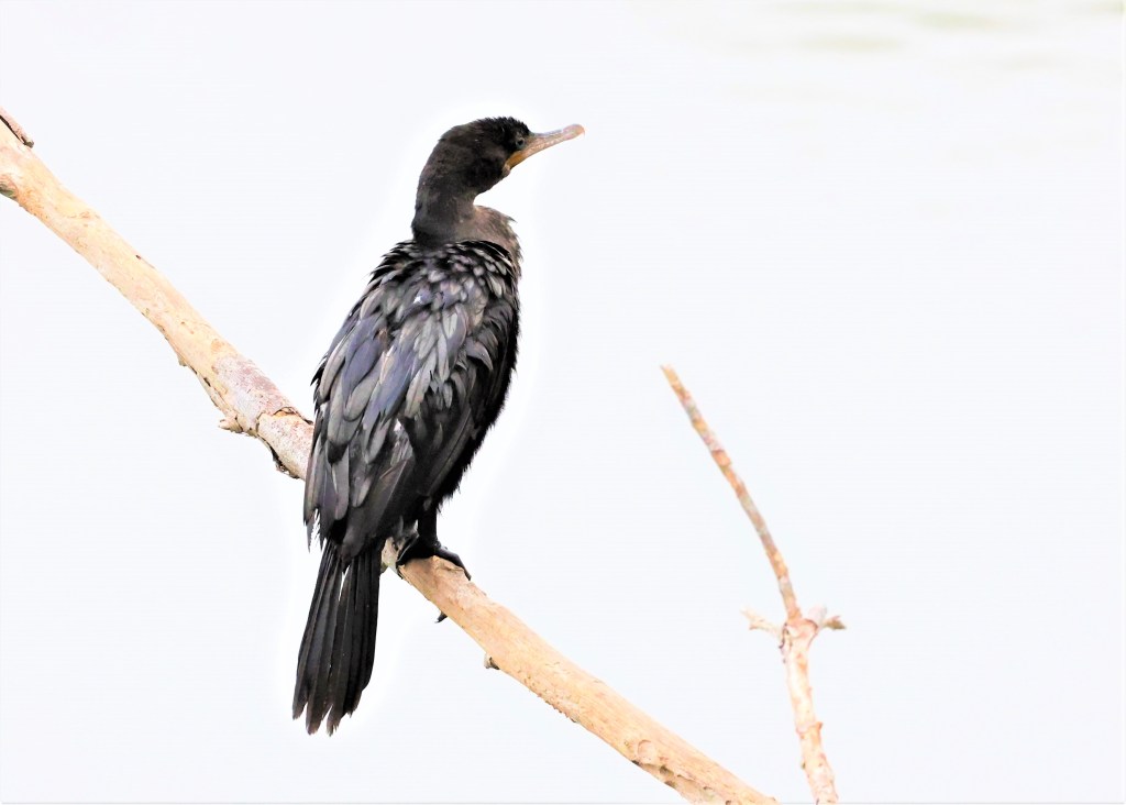 Now what? I had the Bat Falcon and good photos. I had seen the Golden Crowned Warbler with OK photos. I had seen the Social Flycatcher but no photos and I had not seen and thus not photographed the Groove Billed Ani. It was already past noon on my last day. There would be time for one more try for photos of the Flycatcher and the Ani. Back to Brownsville first. Just as I walked out on the Land Bridge, people were pointing long lenses at something in the trees next to the small pond, where I had had my brief glimpse of the Social Flycatcher before. I ran down the path and joined the group just in time to get a split second look and it was gone. No photo but it was there and maybe it would be in the open again. Three minutes later, one of the birders said “I got it”. The Flycatcher was buried but its yellow breast was visible. Then it was right above me – almost upside down on a branch only partially obstructed. As too often happens, by the time the camera focused, it was gone. That would be the closest I would come. I stayed for another hour – no sightings by anyone. There were fun photos of a Neotropic Cormorant and an Anhinga but that was it. I had given it my best – good visuals, heard it call and could check off a mega rarity for my ABA List – but time to admit defeat. On the way back to the car, I took some pictures of the many Black Bellied Whistling Ducks and Muscovy Ducks (domestic) that had been numerous on each previous visit as well.