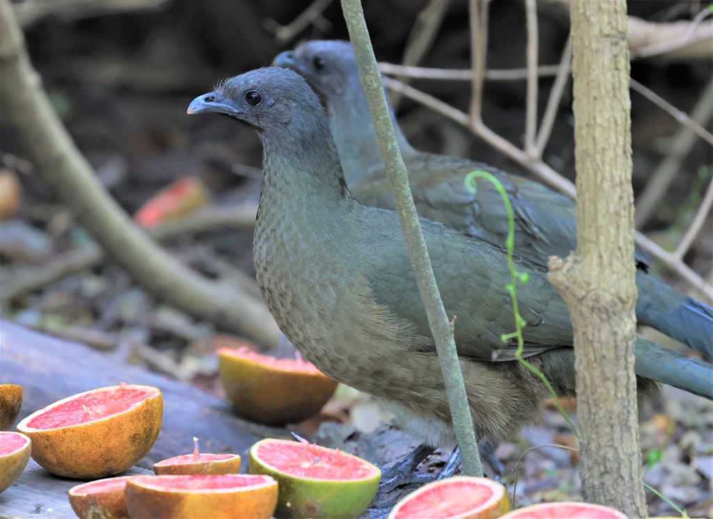 Lisa said there was a chance we might spot the Bat Falcon on one of the many snags visible from the tower about 1/2 mile into the park. We birded our way to it not seeing much except for a couple of Chachalacas and a Roadrunner on the ground. From the tower we saw a Gray Hawk, some Turkey Vultures, a Red Tailed Hawk and – another falcon – “only” a Merlin. You know there is something special afoot when there is disappointment in seeing a Merlin. Lisa pointed out a number of snags where she had seen the Bat Falcon before and gave us a geography lesson pointing out Mexico not that far to the south. An interesting aside was about some wind turbines visible in Mexico. Lisa said that they get 90% of their electricity from Mexico and during the blackout in Texas last year, they were unaffected because of that sourcing.