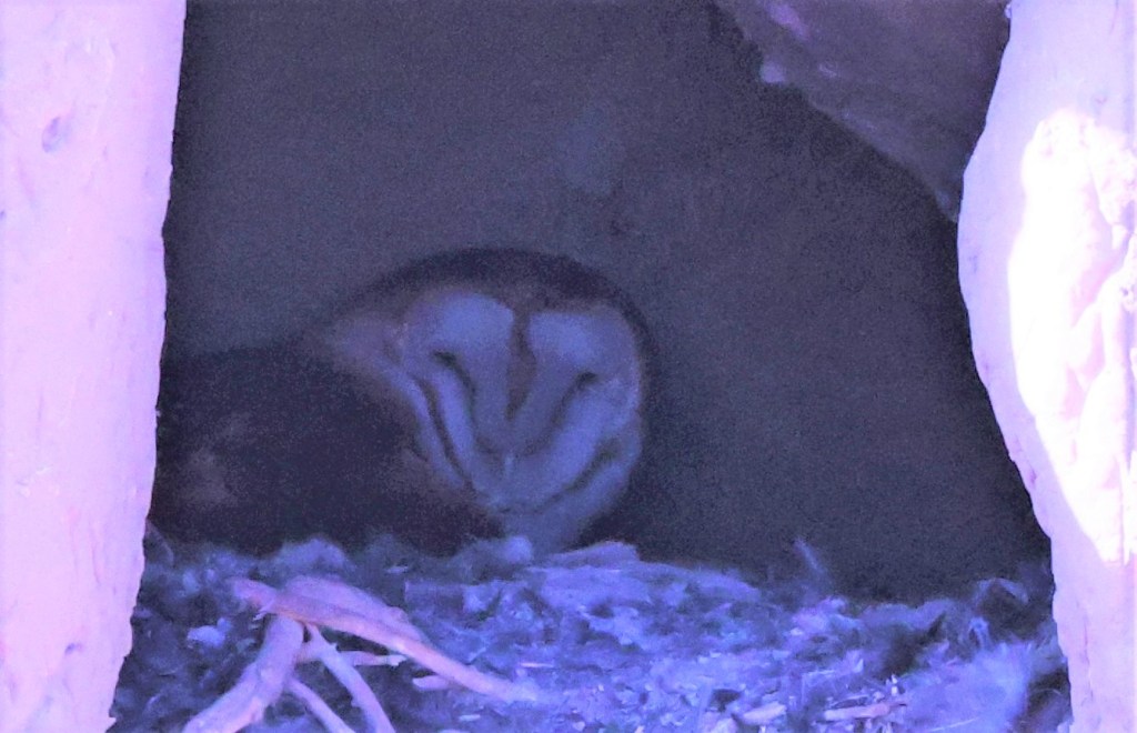 Vic also got me in touch with Bill and Nancy LaFramboise who had recently seen FERRUGINOUS HAWK on 9 Mile Canyon Road, a key stop later that day. First I headed to Dodd Road near Burbank, WA hoping for YELLOW HEADED and TRICOLORED BLACKBIRDS, a BROWN HEADED COWBIRD and especially BARN OWLS in their hillside roost. It was only 20 miles away. Along the way I stopped to scope some large white blobs I saw in the Columbia River – my first AMERICAN WHITE PELICANS of the month. Along Dodd Road, there were hundreds of black birds coming in to the cattle feed lots. I tried to shift through them as they moved back and forth. I was only able to identify RED WINGED BLACKBIRDS and EUROPEAN STARLINGS. I could easily have missed TRICOLORED BLACKBIRDS but would have noticed YELLOW HEADED BLACKBIRDS – I did not. Fortunately further up Dodd Road there was at least one BARN OWL in one of the hillside roosting holes. In years past there have always been more than that. I learned later that they have been harassed by kids throwing rocks – aargh!!