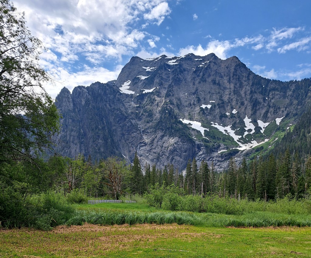 After 4 unsuccessful chases to see a Chestnut Sided Warbler in Washington, I finally got to see one on June 9th this month when Tom St. John and I went to a stakeout spot near Gig Harbor in Pierce County where birding friend and Master Birder classmate Cara Borre had located one the day before. Unlike the others I have chased which promptly disappeared the day after first reported, this one (and later a second one) has been very cooperative, singing constantly, perching in the open, remaining in essentially the same area and is still present as I write this more than 2 weeks later. Shortly after finding this nemesis species in my home state, I developed a nasty non-Covid cough and touched neither camera nor binoculars, confining myself inside until yesterday. Feeling better if not all the way better, and desperately needing to finally get out of the condo, yesterday I visited the Big Four Ice Caves in Snohomish County. The beautiful area had been closed last year with a bridge out and trail damage. Choosing this spot was of course aided by the presence of a bird, an American Redstart. This beautiful wood warbler is regular in Washington but limited to very few areas. One had been at the Ice Caves last year and it was there again, being seen by many. Yesterday it was seen by me as well.