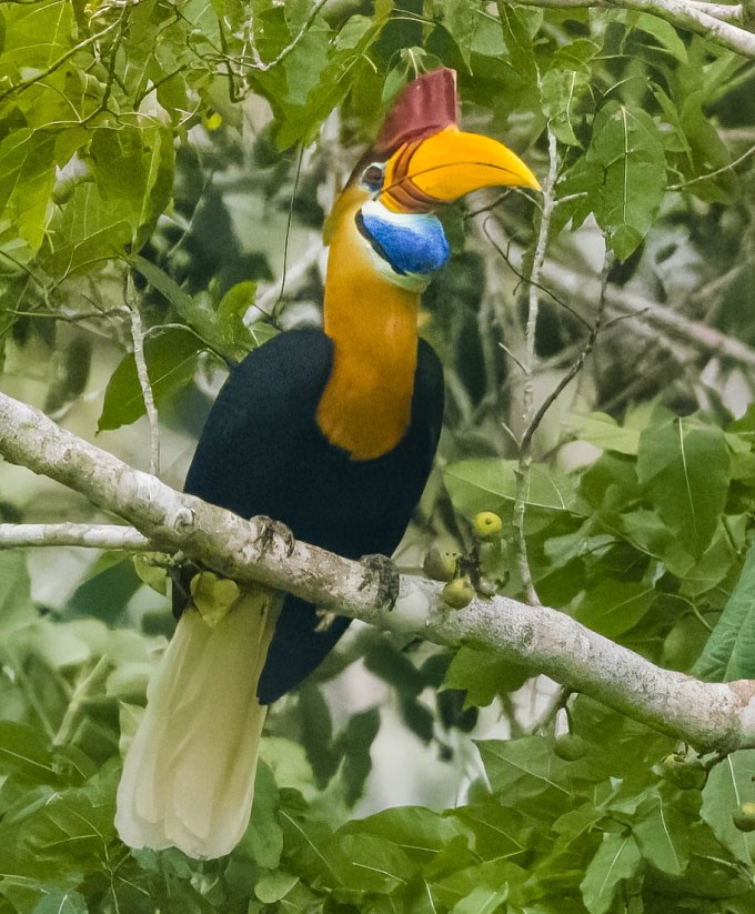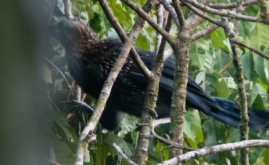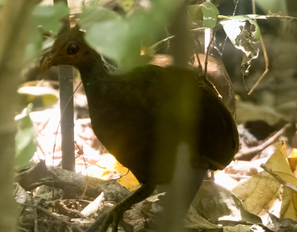 There are many ways in which birders organize their pursuits and related trips – life lists for continents, hemispheres, countries, states, counties, patches and of course the world at large. One I had never heard of but which makes great sense is to see birds in each of the taxonomic families of which there are 249 including some that are monotypic (having only one species) as well as others that have hundreds of species. One of the participants in the group was closing in on seeing all of the families with a pre-tour trip to get the monotypic Pityriasidae family’s Bornean Bristlehead. For him among the most important birds on the trip was the Maleo – of another monotypic family “Macrocephalon”. This was one of the most frustrating observations on the trip for me. We had two Maleos perched somewhat in the open in a tree. I was able to get a decent digiscoped photo of part of the bird through the guides spotting scope. A few minutes later, I heard “the Maleo is in the open” and rushed to the viewing spot. Just as I got the camera focused on a great view of the full bird, one of the participants made a sudden movement and off it flew – no photo. It was great to get any view and any photo, but as I have said, I was hoping for some really good photos, and this was a major missed opportunity. I think after the trip, this birder had either 2 or 3 more families to go to complete his quest.
