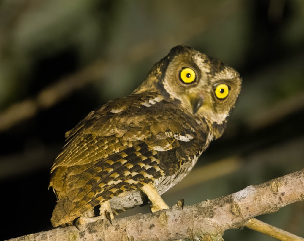Birds that are always sought after in every trip are the owls. We did well finding 9 species and getting photos of many. (I missed one.) I am always amazed when birders can pinpoint the location of an owl in the dark. Unlike most of the species we sought, the owls were not only responsive to playback returning calls, but also in coming in close. A productive technique is to draw the owls in with playback and then look for eyeshine as you scour the trees with spotlights. Our guides were great at this.