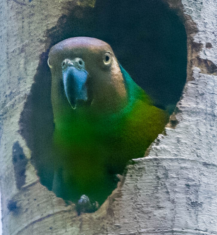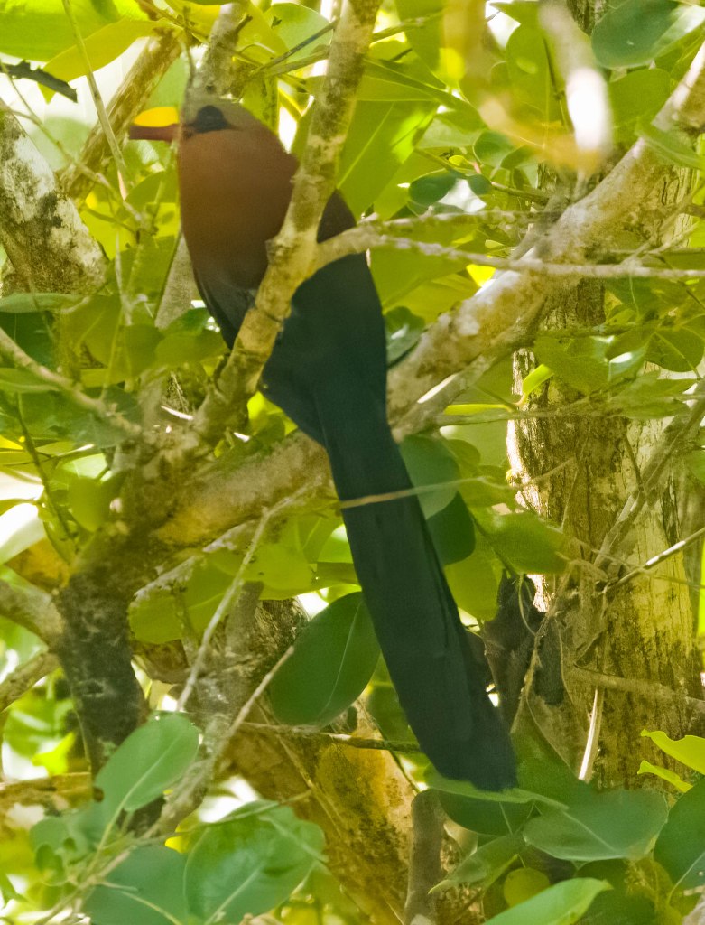 Another group of birds that are generally among the favorites on any trip are parrots and related species. Although they are large and colorful, they can be difficult to see clearly and even more difficult to photograph as they are often high up in the trees and buried in foliage and they fly quickly overhead and disappear. We saw 15 species in this group, often quite distant or buried as indicated above. My photos are of mixed quality at best and for the ones not shown, either the photos are truly bad or there were no photos at all.