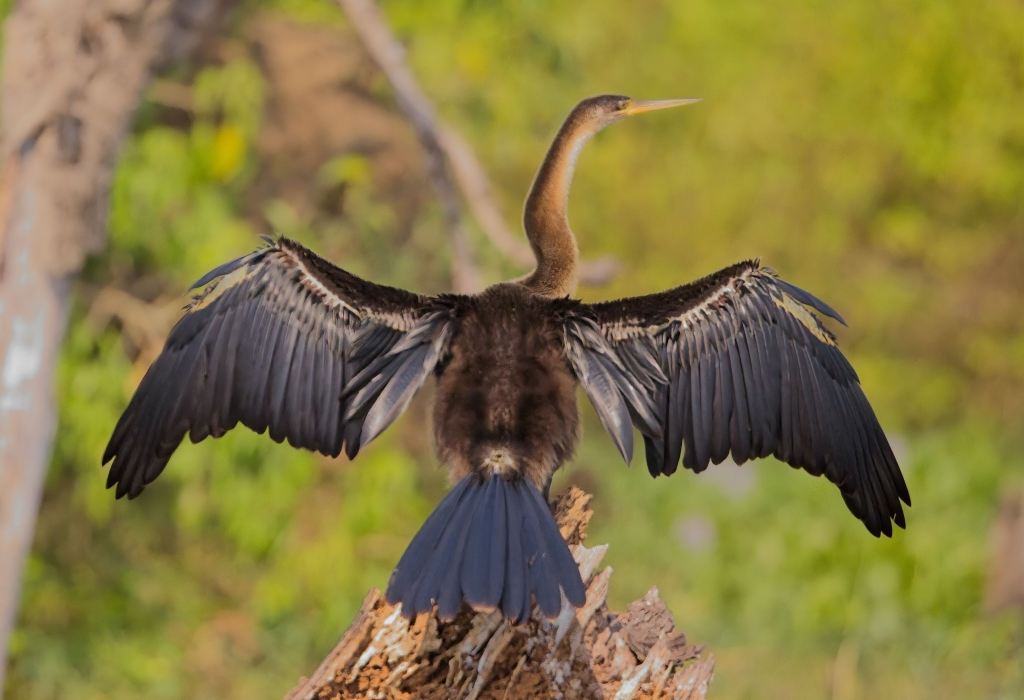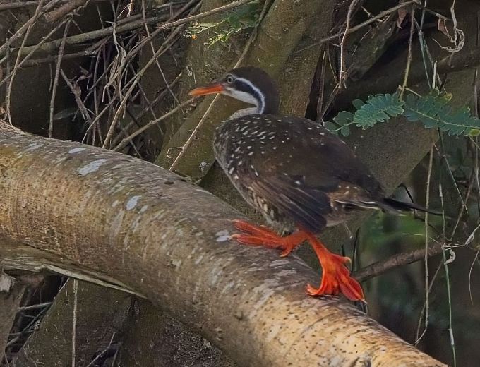 Today would feature another boat ride – this time motorized as we would explore part of Lake Mburo NP, starting at the Nyarutegura River mouth. There were many of what I would call water-oriented birds, but the majority of of the birds seen were on the land adjacent to the lake. Over 4+ hours we had 66 species with photos of almost half. Ten were lifers and 14 were life photos. Without question, the most special of the birds seen, and one on my ten most wanted list for the trip, was the African Finfoot. It took some doing and lots of luck, but I was able to get a decent photo of the Finfoot running on a log showing its huge finned feet.