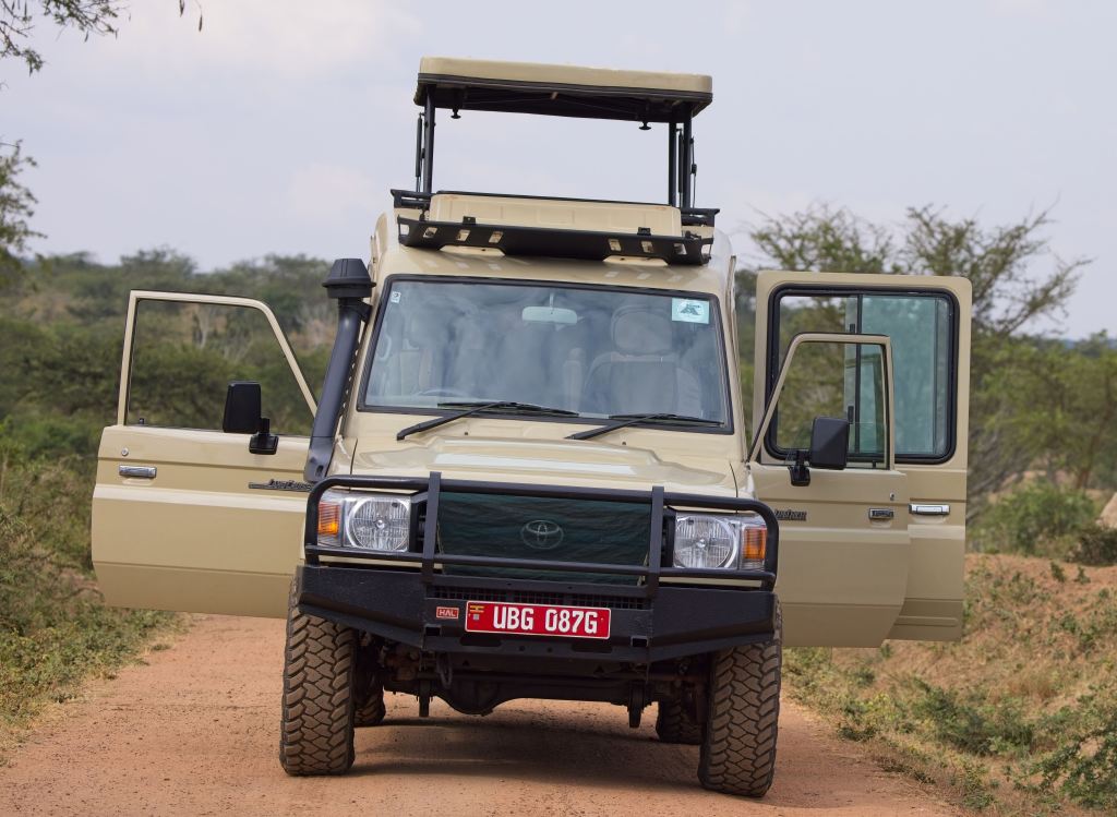 Our Trusty Land Cruiser – two seats up front and six in the back – with a pop top