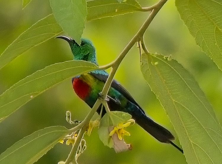 With the threat of rain seeming certain, we began birding and cautiously added only a few species to our trip list. But apparently the birds knew that rain was coming and it very quiet and birds, if active at all, were seeking shelter. Photo ops were non-existent in the wind, under gray skies and with birds hiding in the brush. I got glimpses only of two species that would have been nice to photograph: Brown-throated and Green-throated Sunbirds, the former a lifer. Then the threat of rain became actual rain, starting slow and picking up to a pretty hard downpour. We tried to wait it out for 30 minutes, but no go – so we left. This would be our only rain of the tour so hardly a reason for complaint, but still a disappointment as in addition to the two sunbirds, it was supposed to be a good place for Green-backed Twinspot and Fire-crested Alethe – two would-be lifers.