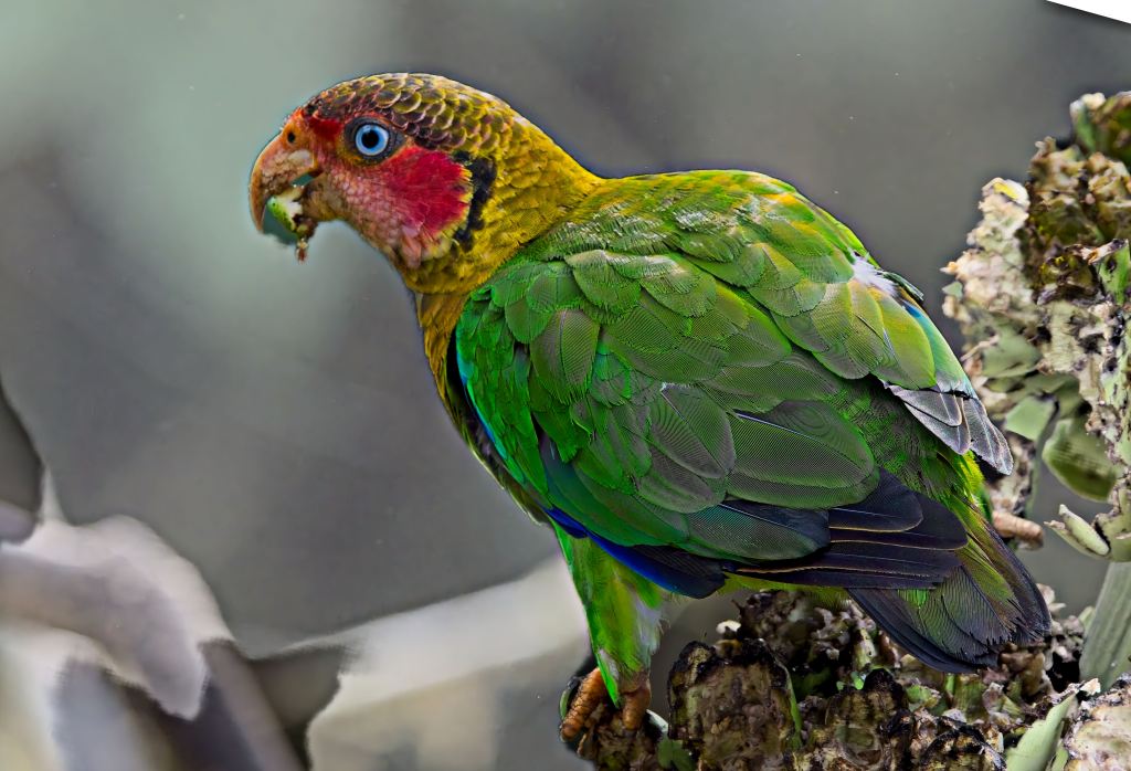 A stop on the road produced another lifer, a Scaled Piculet. Piculets are essentially miniature woodpeckers, generally less than 4 inches long. This piculet is found only in Colombia and Venezuela. Since I will likely never visit Venezuela, this was essentially an endemic for me. At the same stop I got a life photo of a Red-billed Parrot and missed a life photo opportunity for a Pale-eyed Pygmy-Tyrant. A comment about parrots and their kin. The literature says that the length of the tail is a specific feature that clearly distinguishes parrots and parakeets and that parrotlets are “smaller”. All are in the parrot family. My trouble is that my usual view of these birds is a brief one as they fly quickly by and I do not have sufficient experience to always distinguish a “longer” from a “shorter” tail. Identifying the specific species is even more challenging as field marks like “red or orange or blue chins or cheeks” are generally unseen by me as they fly overhead and quickly disappear. At least when they perch, there is a fighting chance – even if the tail is invisible so there goes that distinguishing field mark. In this case, the bird was perched and the tail appeared “short” but where is that red bill? Not clear to me, but the red vent is clear and that confirms the ID.