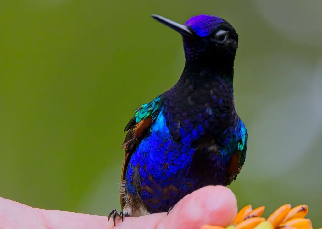 We wee back at the Lodge around 5:00 p.m. in time to add a life photo that I wanted very much, a Bay-headed Tanager. I had seen this striking species many times, 13 in all, including in Trinidad, Costa Rica, Peru and Ecuador but had always failed to get a photo. Now I had one. I also improved earlier photos of Red-billed Parrot and Rusty Flowerpiercer and got a life photo of the endemic tiny Santa Marta Woodstar seen earlier in the day without a photo.