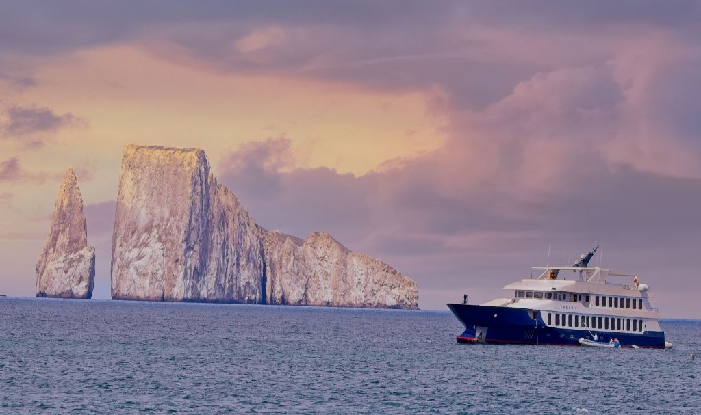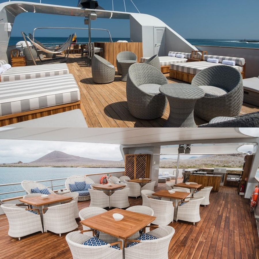 Onboard dining (all meals and beverages) are included in the Ecoventura’s fares. The food is freshly prepared using only sustainably sourced meats and seafood. All snacks are complimentary and available at the Bar throughout the day. Ecoventura’s Open-Bar policy provides complimentary beverages (wine by the glass, beers, spirits, cocktails, fresh juices, sodas, brand coffees and teas). Also included in the cruise tickets are the Wi-Fi Internet (ship-wide coverage), kayaking and snorkeling equipment (masks, fins, snorkels), wet suits (available on a first-come-first-serve basis), Galapagos land transfers (airport-ship-airport) and all guided shore excursions/boat tours.